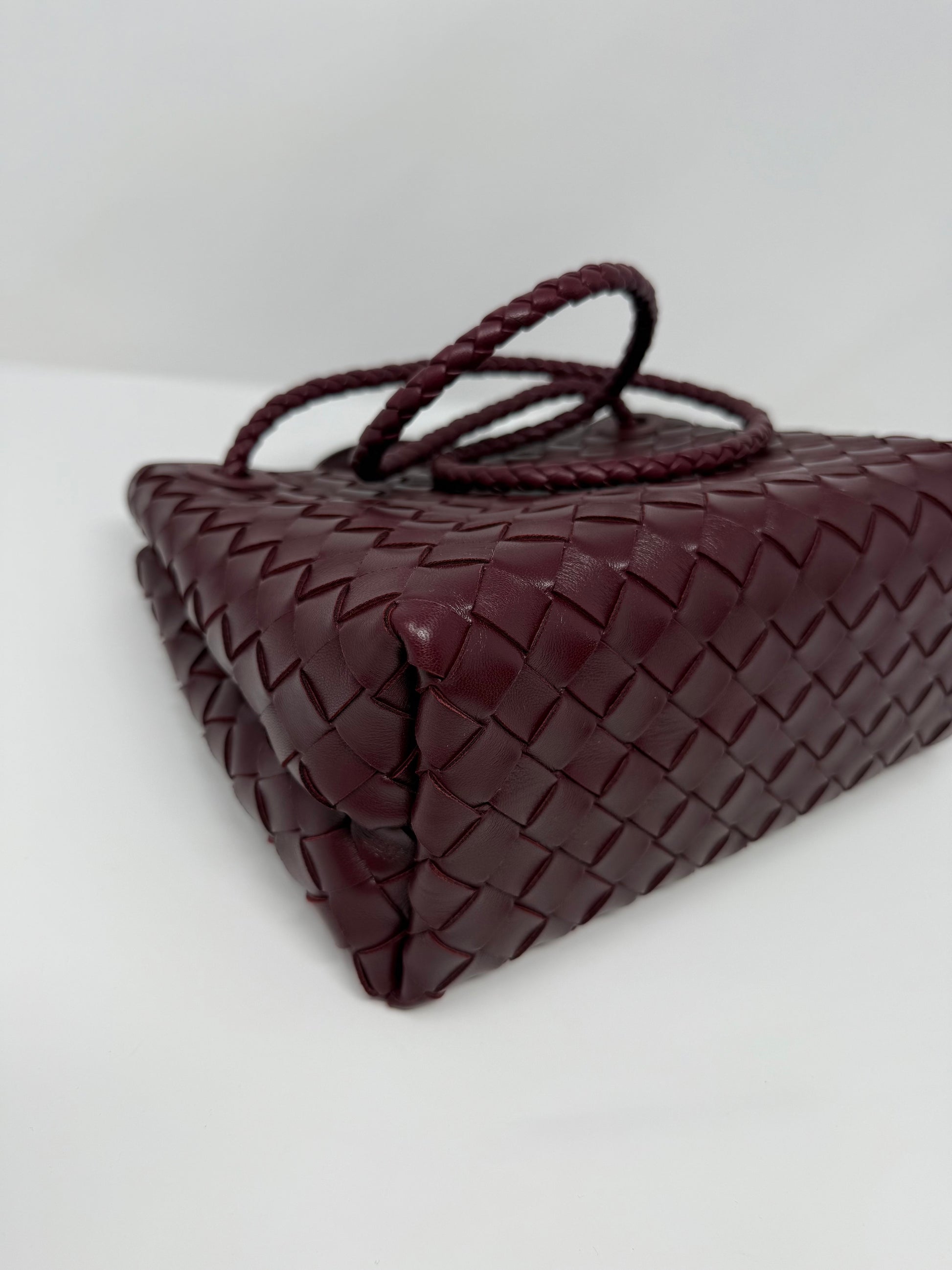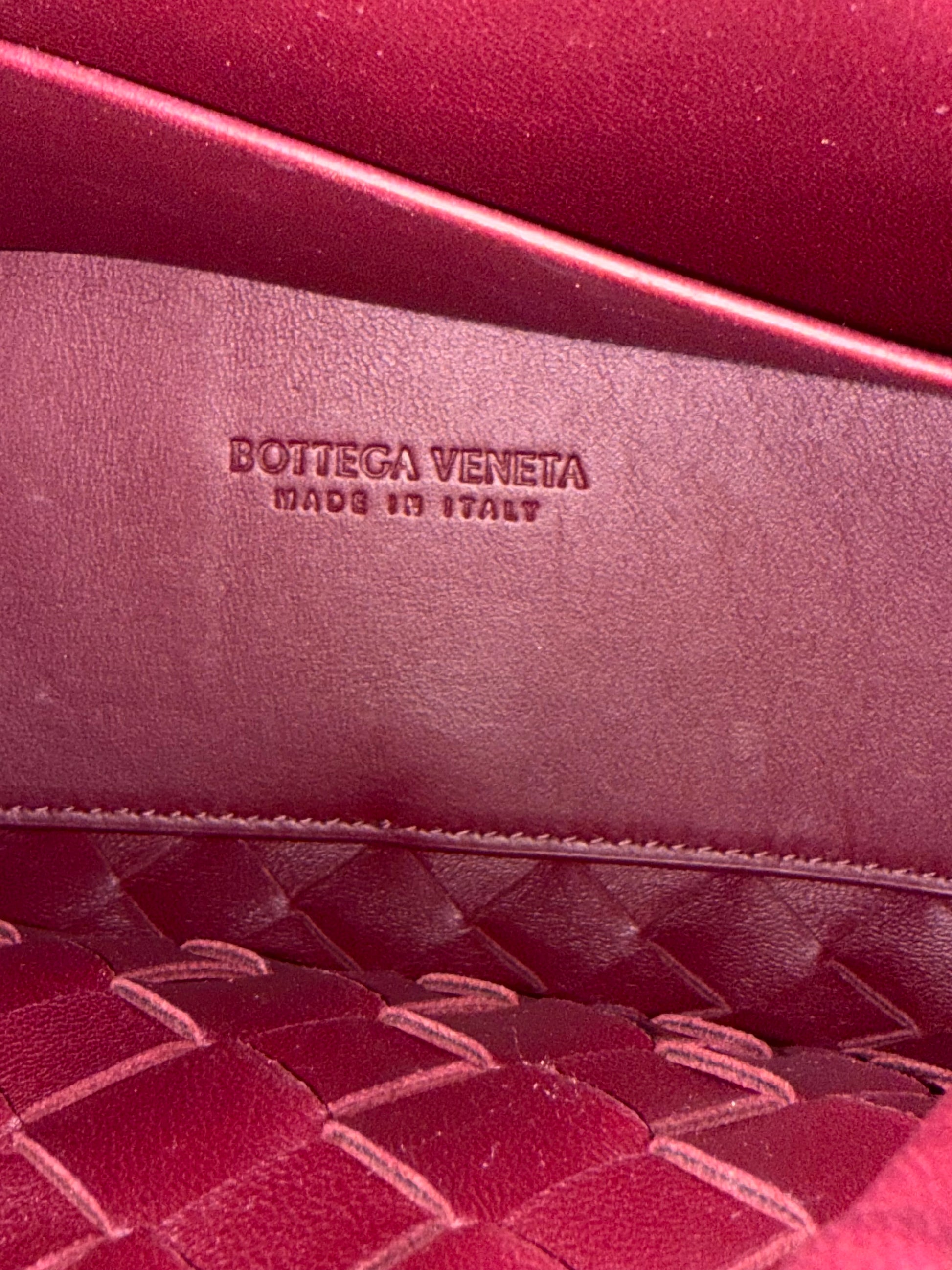 Description: This is a Bottega Veneta Small Andiamo Barolo Burgundy. It is crafted of beautiful Intrecciato leather with a signature knot detail in a beautiful burgundy color. It features a divider as well as a zippered pocket and two open pockets. The closure is magnetic making it easy to get in and out of the bag. Furthermore, the strap is sliding so the bag can be carried top handle, worn crossbody or over the shoulder for added versatility.
