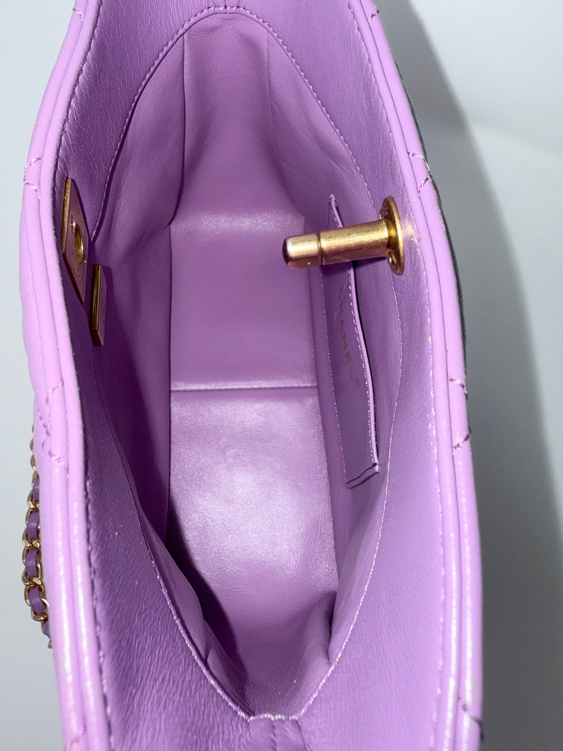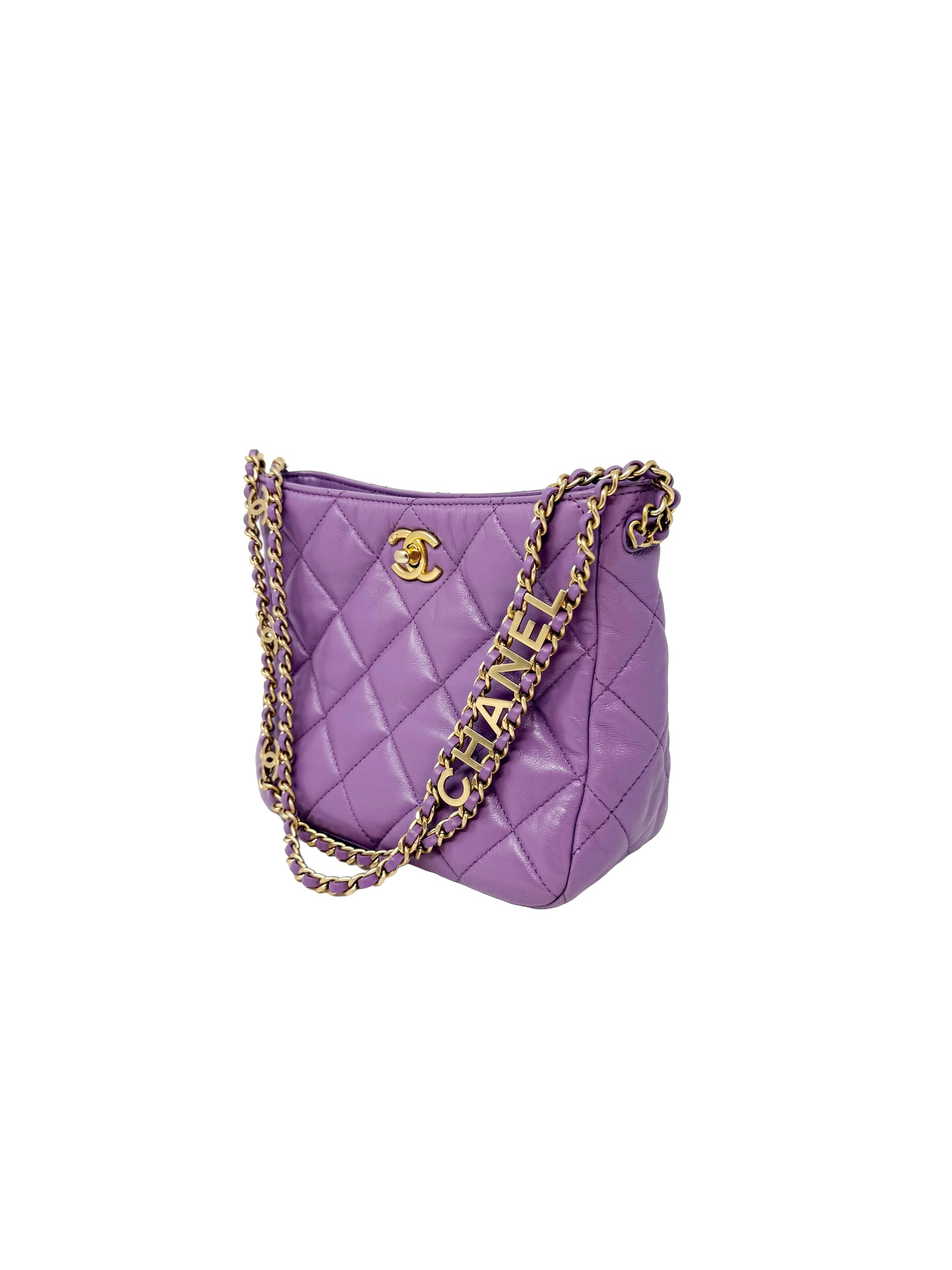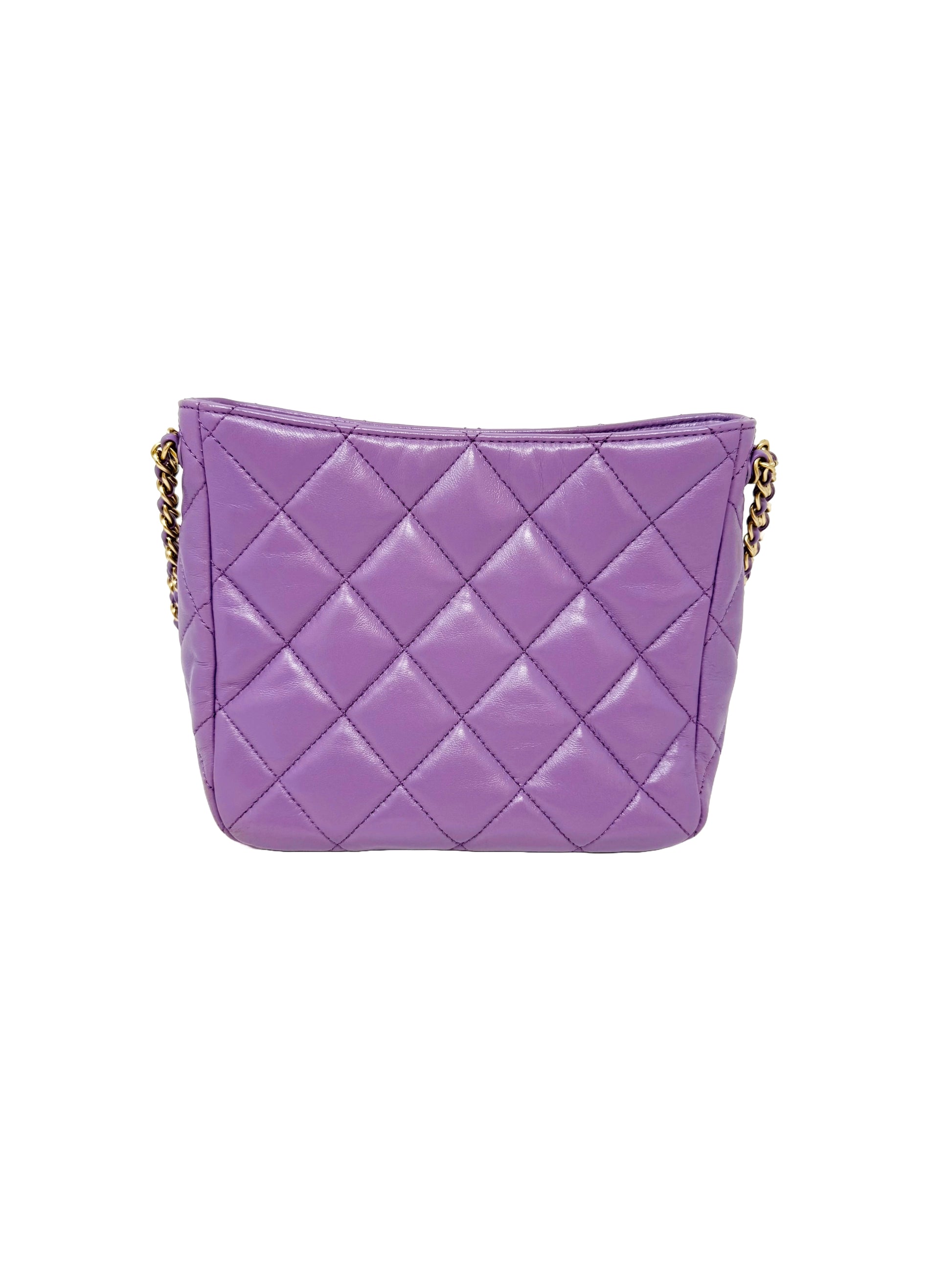 CHANEL Pick Me Up Hobo Small Logo Chain Lambskin Quilted Purple