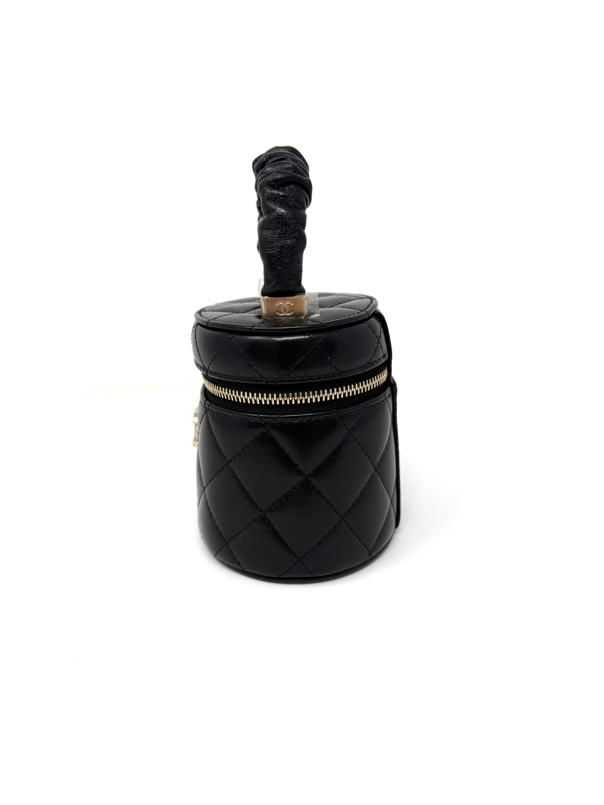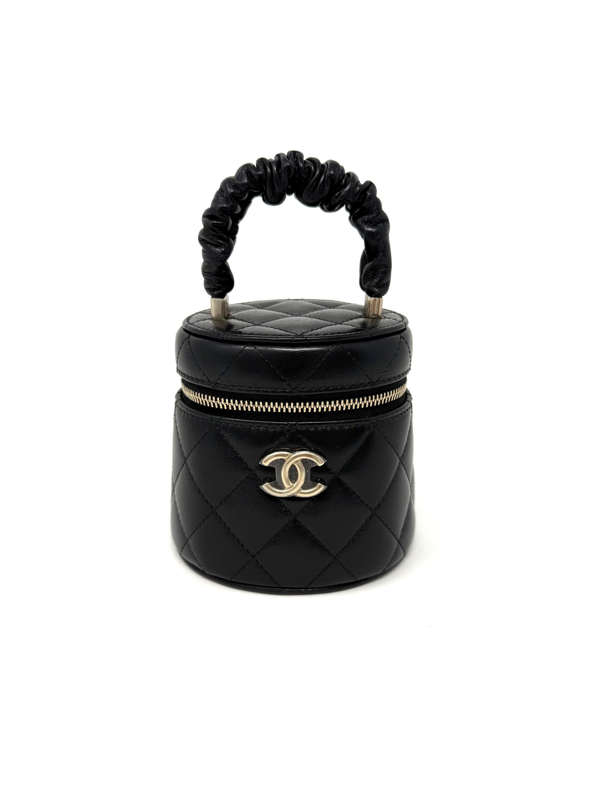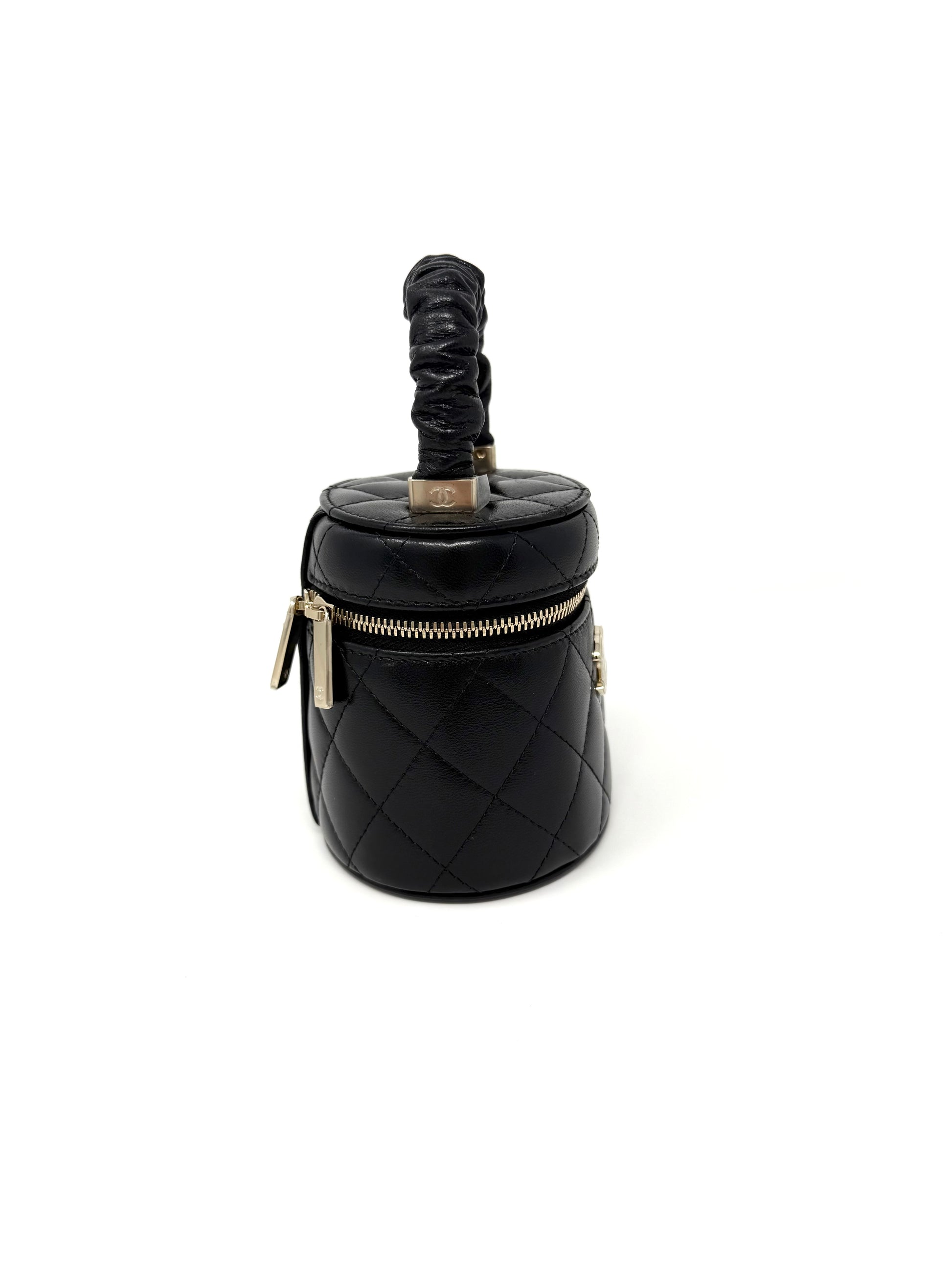 CHANEL Quilted Lambskin Ruched Handle Mini Vanity Case Black