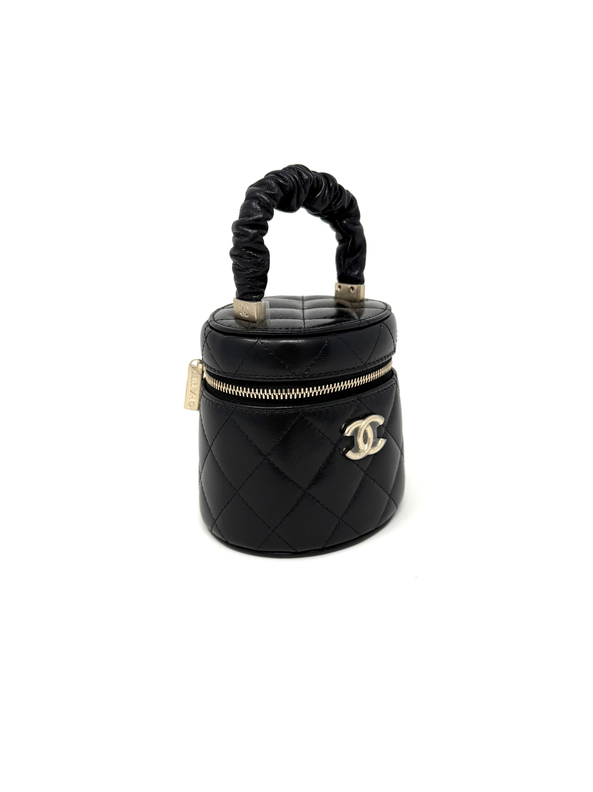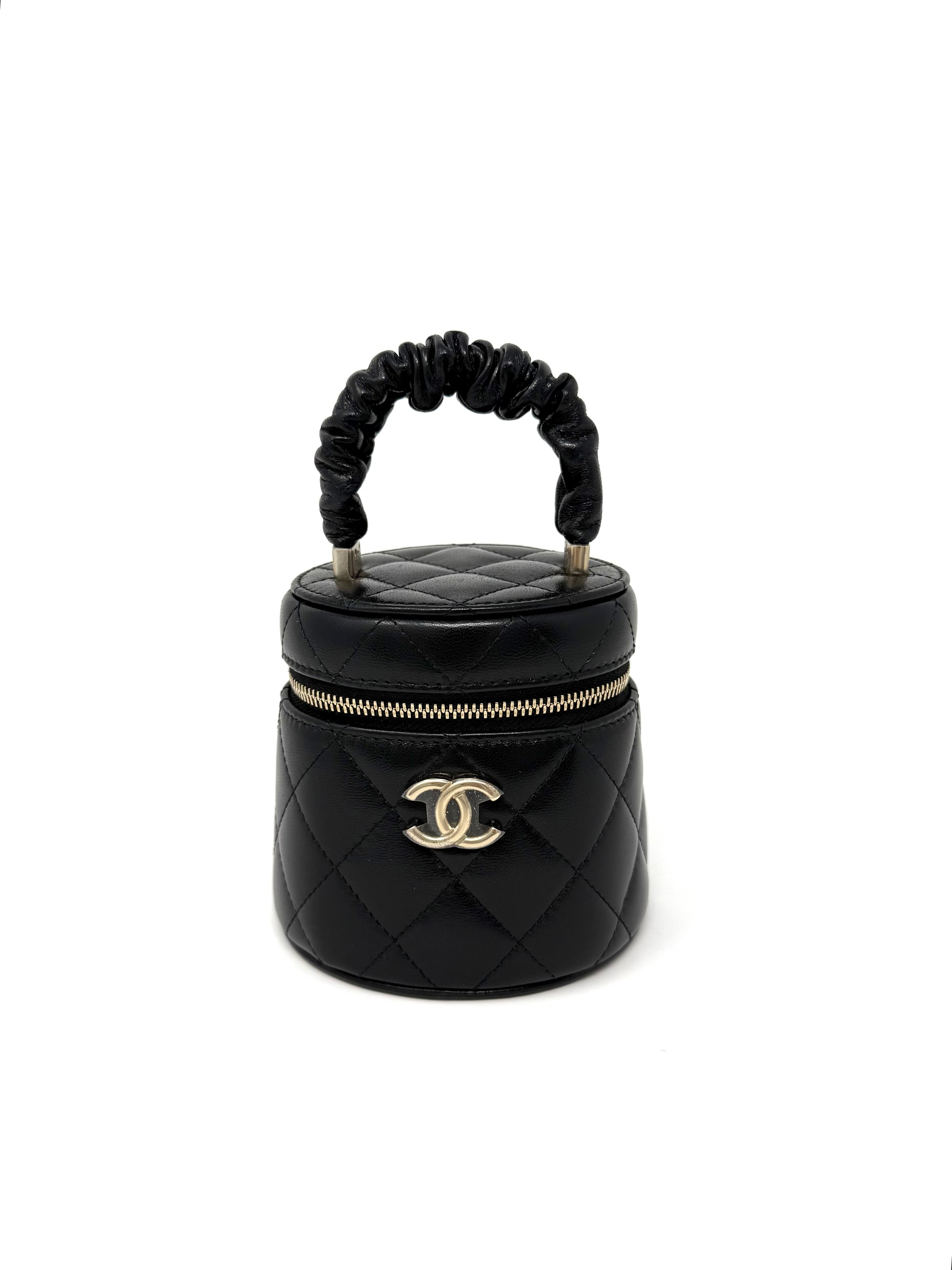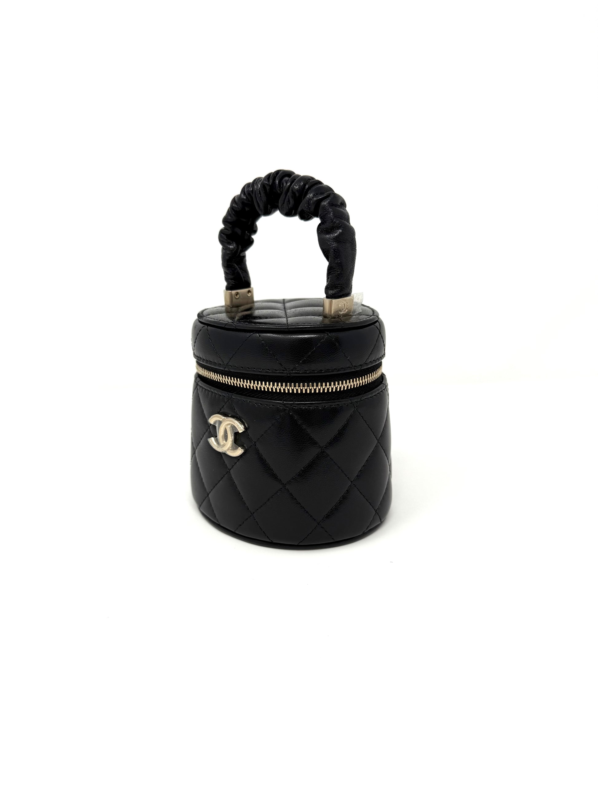 CHANEL Quilted Lambskin Ruched Handle Mini Vanity Case Black