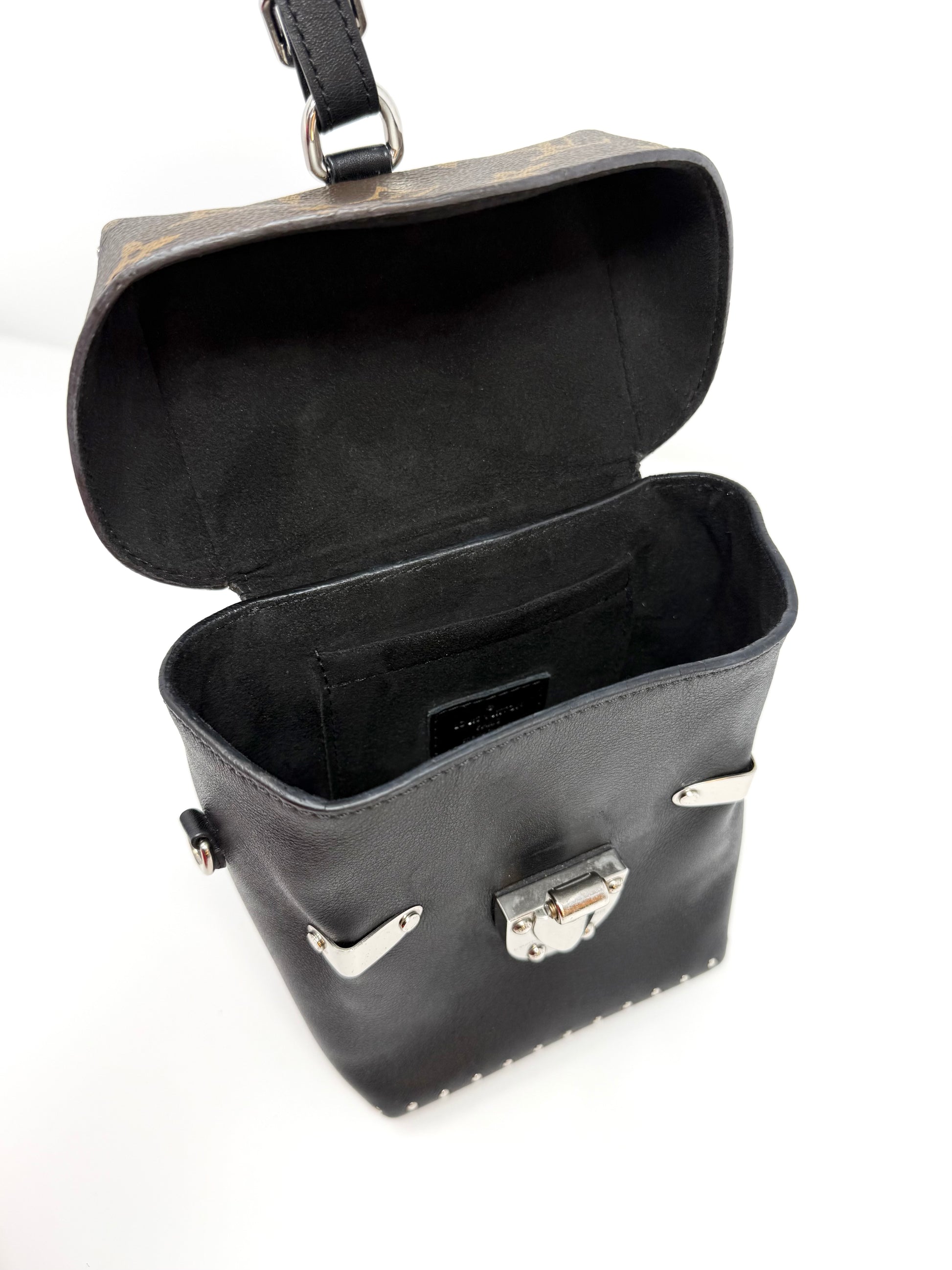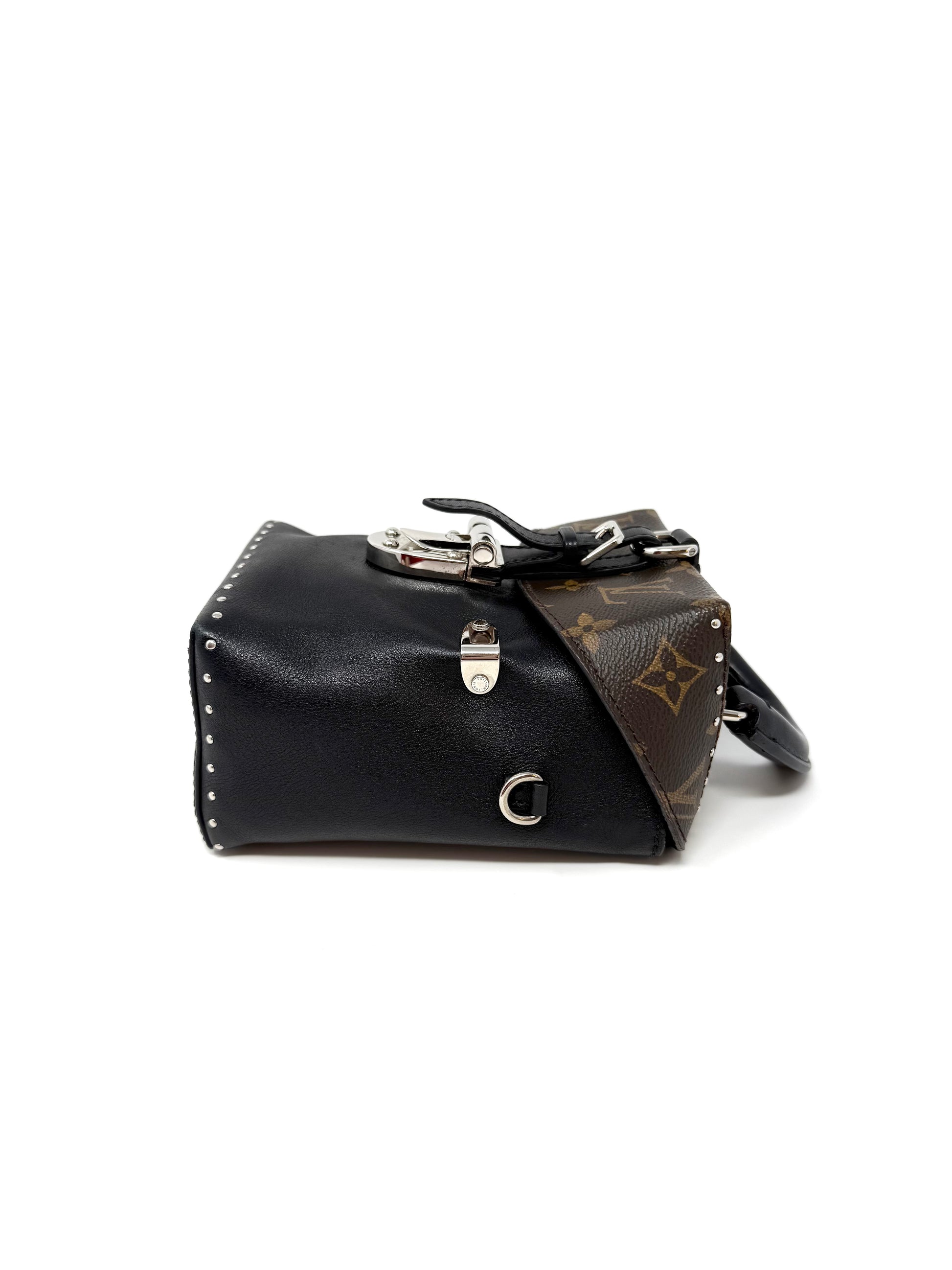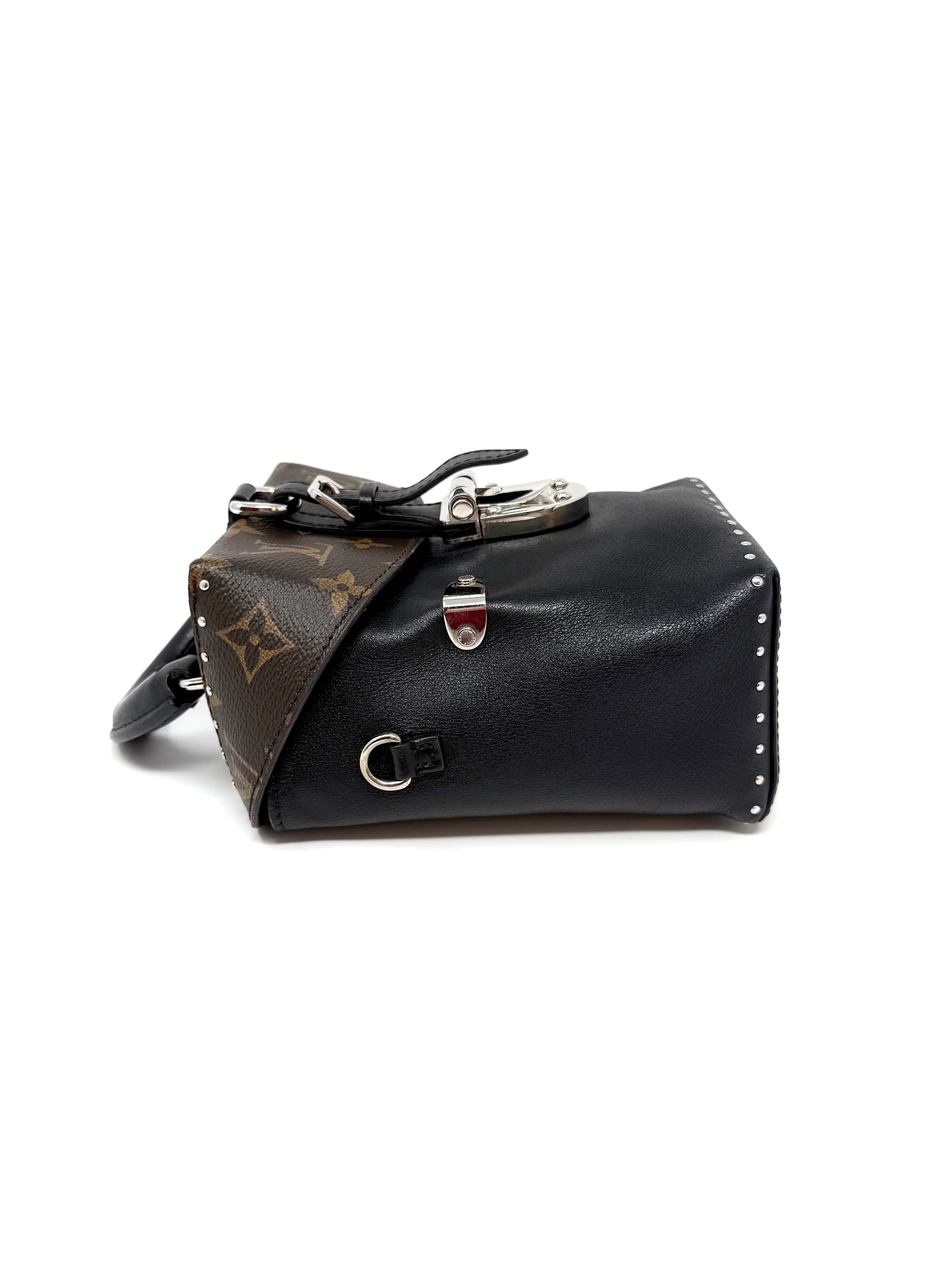 Louis Vuitton Camera Box Trunk Top Handle Studded Black Silver Monogram Canvas