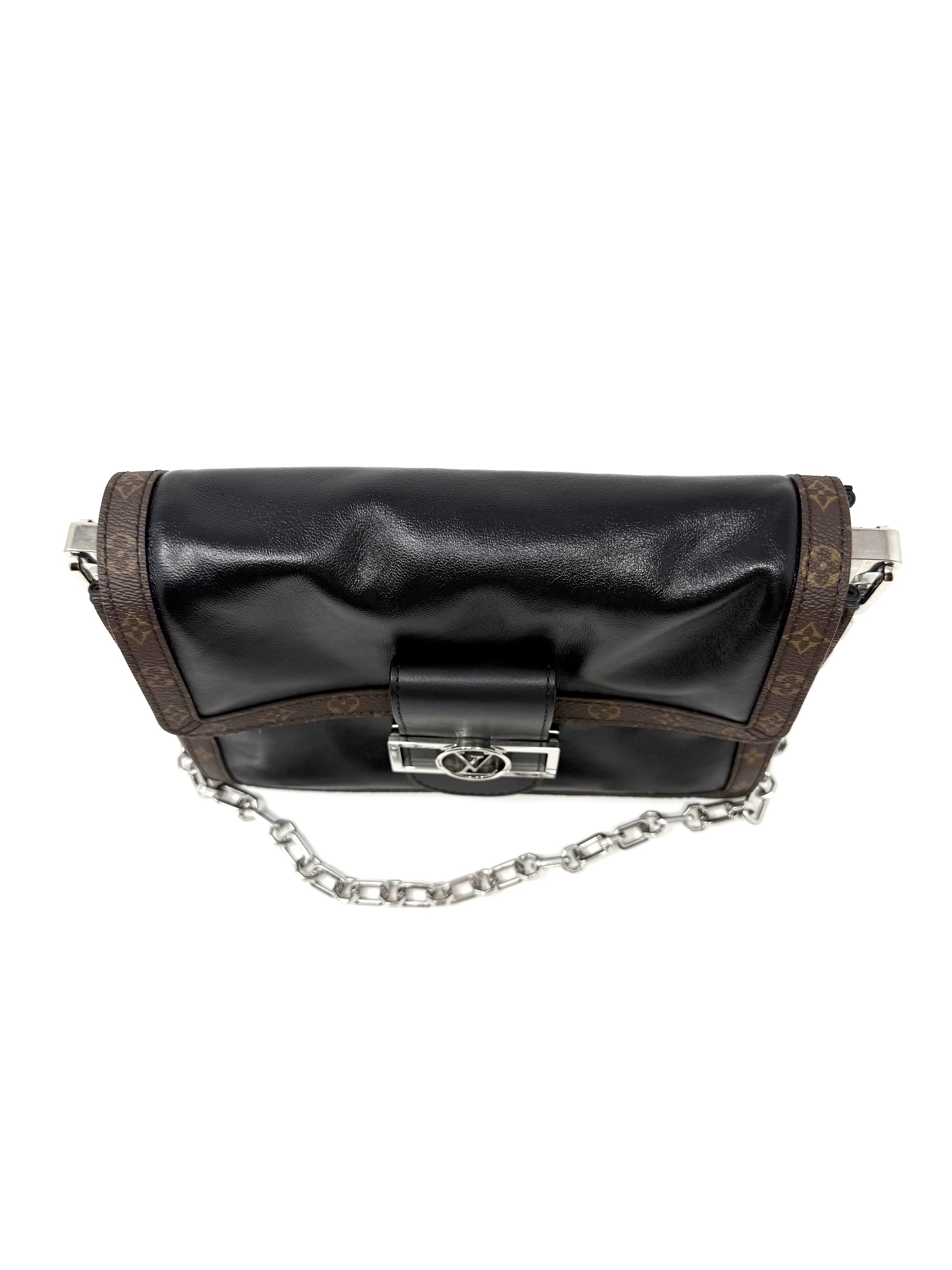 Description: This is a Limited Edition Louis Vuitton Dauphine Soft Vibe MM. Crafted of black leather, it is adorned with silver hardware for an elevated and cool look. It also features monogram canvas trim details. Equipped with both an adjustable crossbody strap and chain strap, this is a very versatile piece.