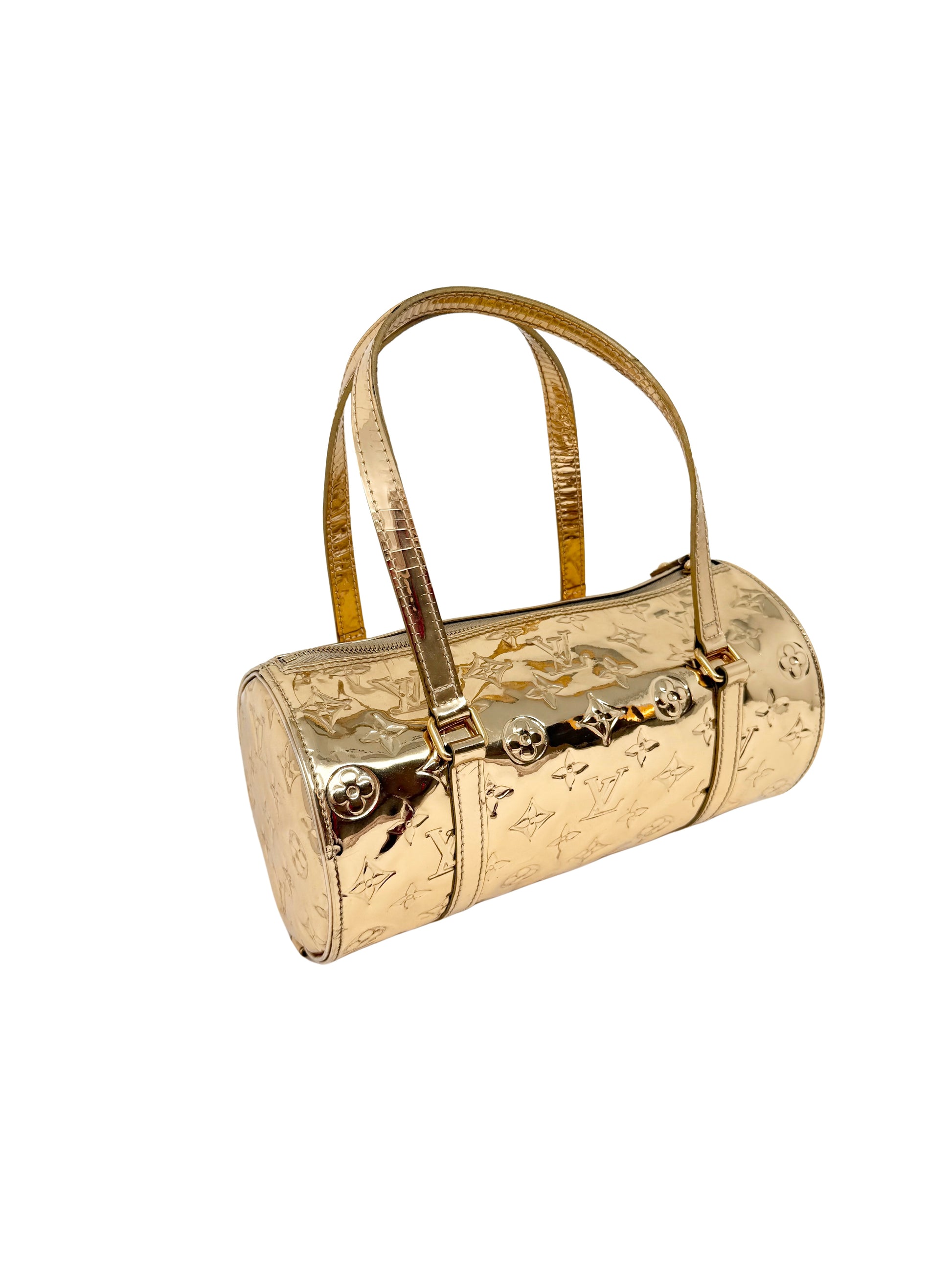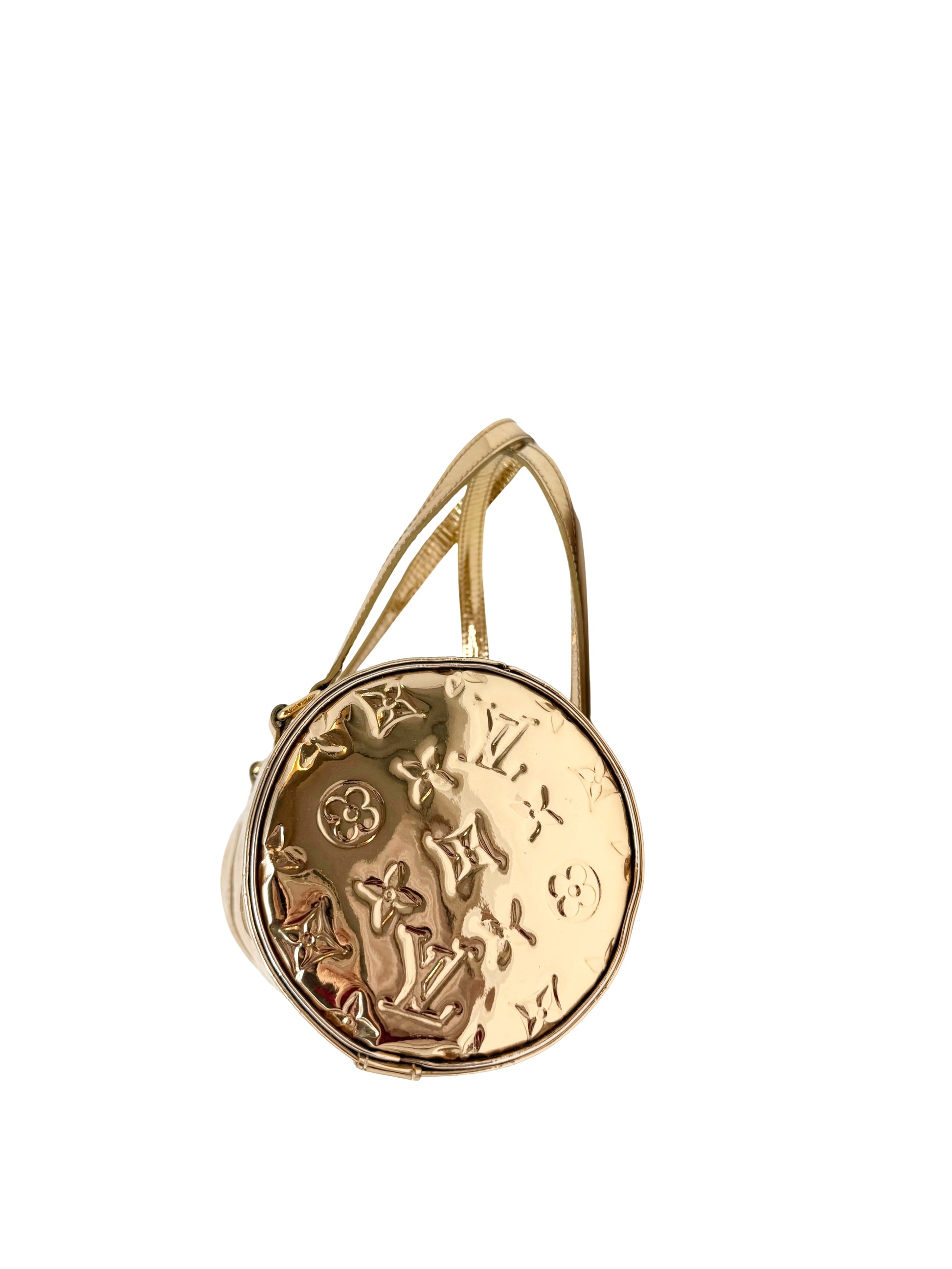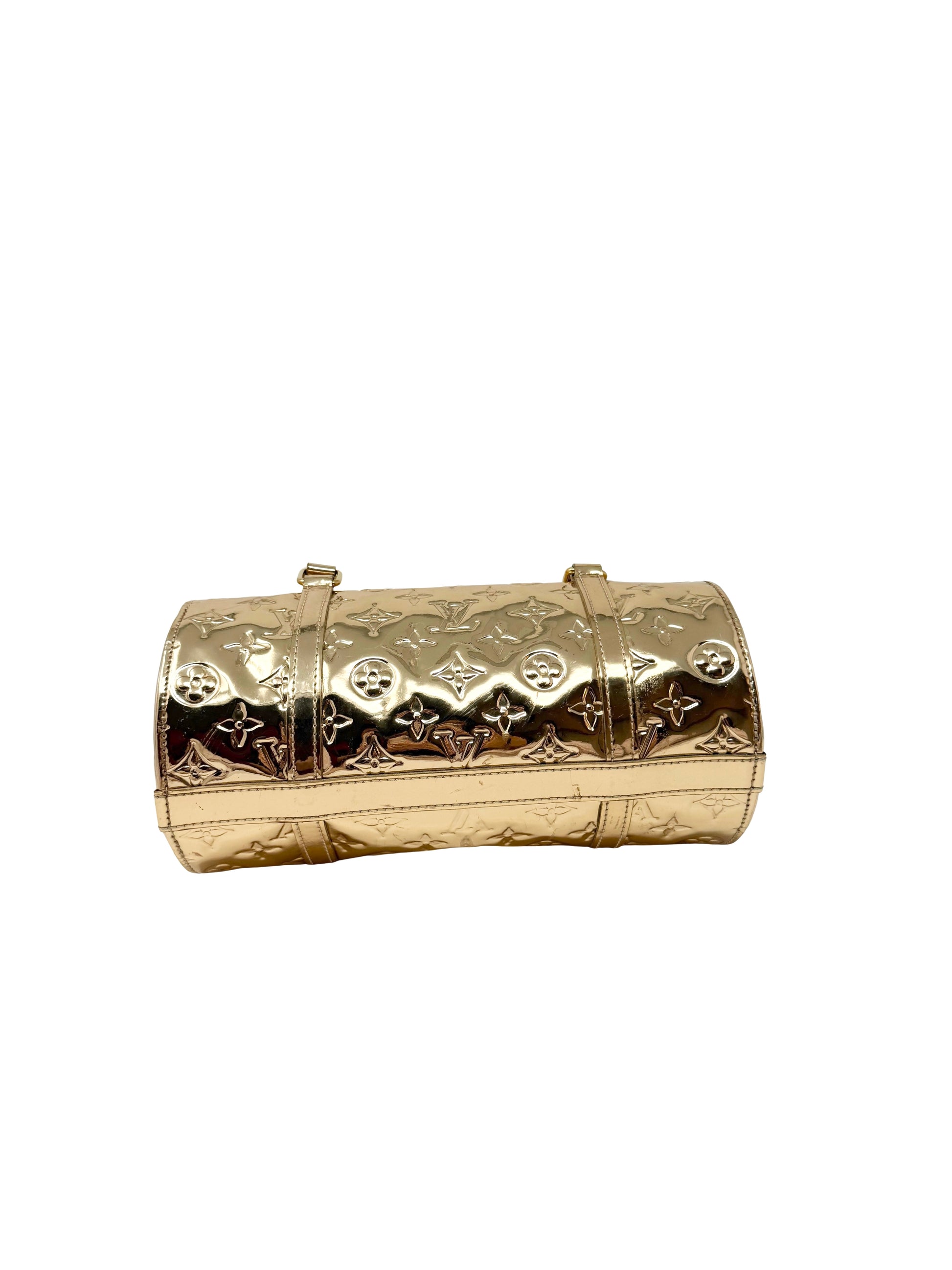 Description: Louis Vuitton Monogram Miroir Mirror Papillon in Dore Gold. This bag features the iconic Monogram Miroir Mirror in Gold that creates a stunning dipped-in-metal effect. It creates a great embossed Monogram pattern on the bright and reflective surface. Release in limited quantities, this is a highly collectible piece.