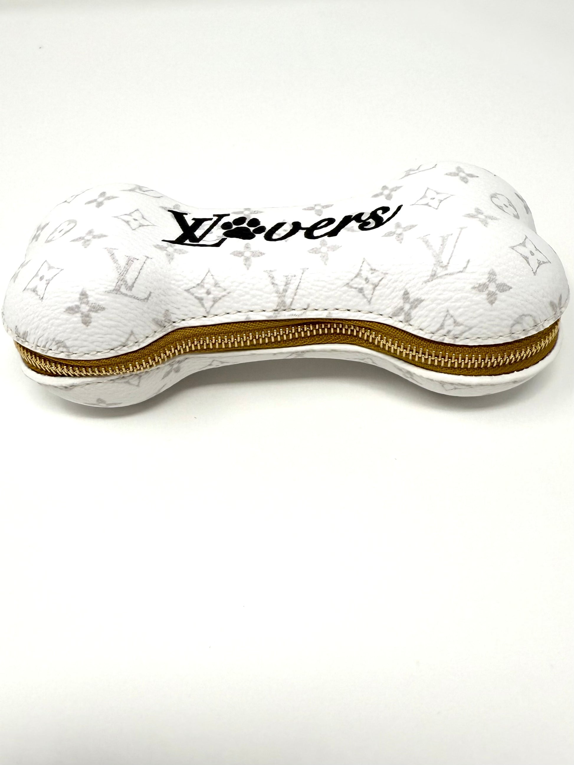 Description: This is a Louis Vuitton Pharrell Bone Key Holder Bag Charm. This rare bone charm debuted in Pharrell Williams's LV Lovers collection. The endearing charm features the LV Lovers motif inscribed on top and features the house’s monogram print throughout. This key holder and charm is the perfect stylish accessory for any dog lover.