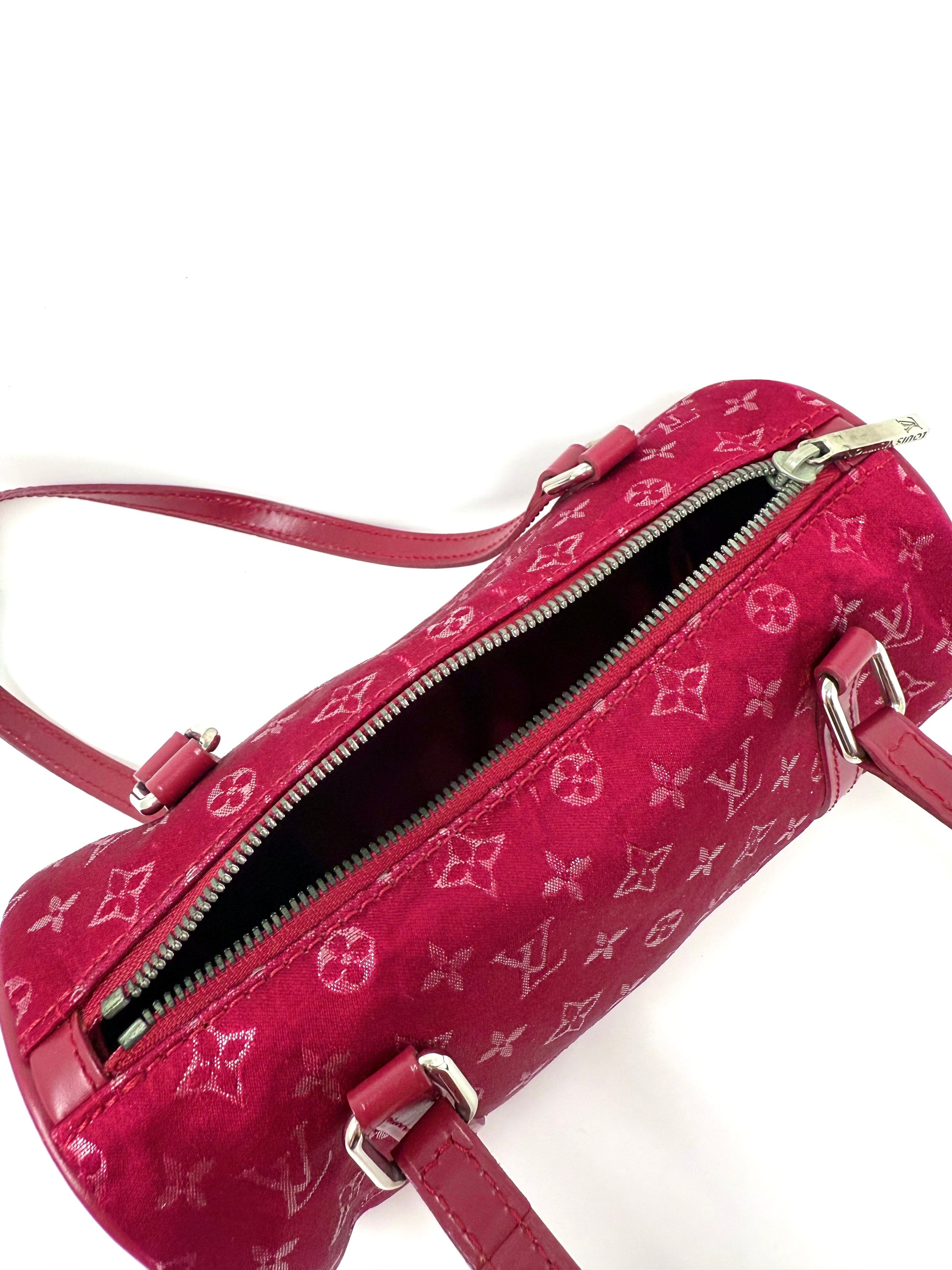 Description: This is a Limited Edition Louis Vuitton Satin Mini Papillon Monogram Shimmer Pink. Crafted of luxurious satin in a beautiful rich pink hue, stunning bag also features shimmery silver monogram woven throughout.