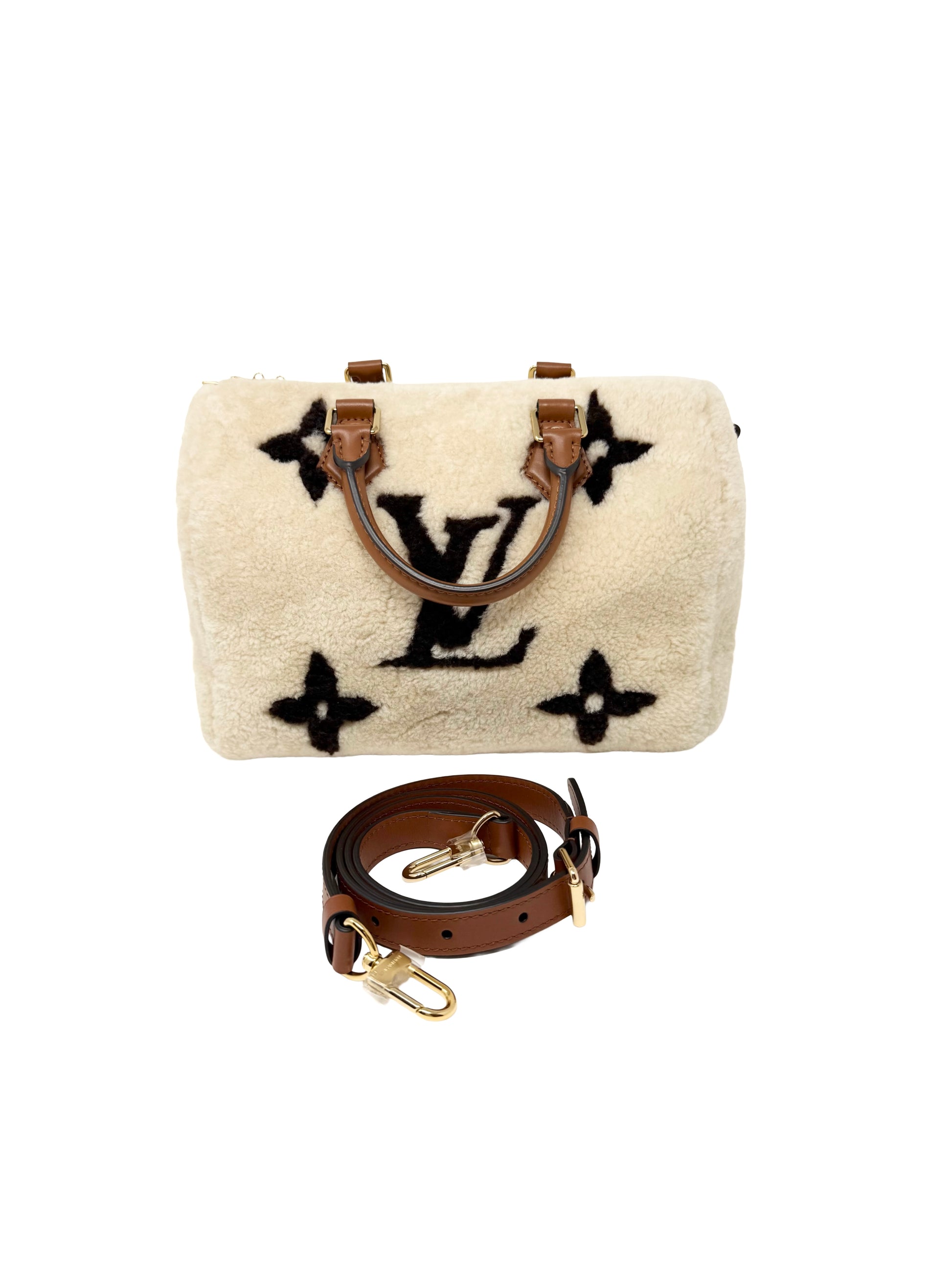 Louis Vuitton Speedy 25 Teddy Fleece Shearling Monogram Giant Cream Brown