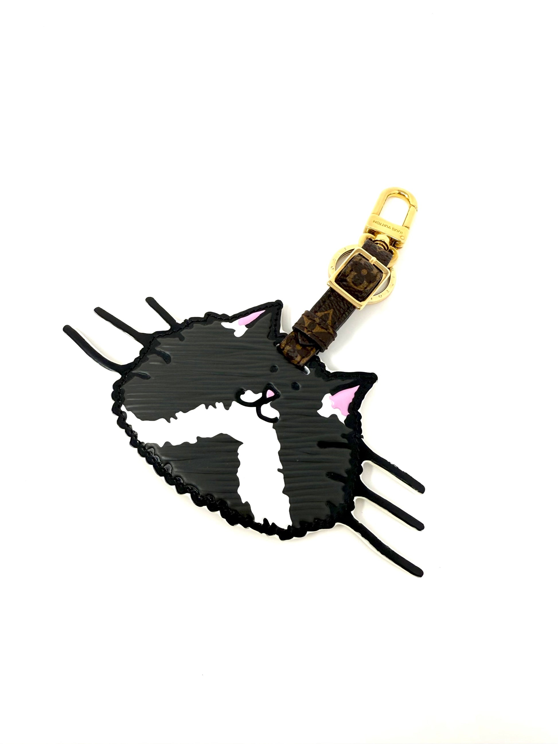 Description: This is a Louis Vuitton Grace Coddington Catogram Charm Key Holder. This adorable and chic bag charm features an adorable gray and white cat with ears in epi leather along with a brown monogram coated canvas loop with a brass D-ring clasp. Designed by Vogue’s creative director Grace Coddington, this is the perfect accessory for all animal lovers.